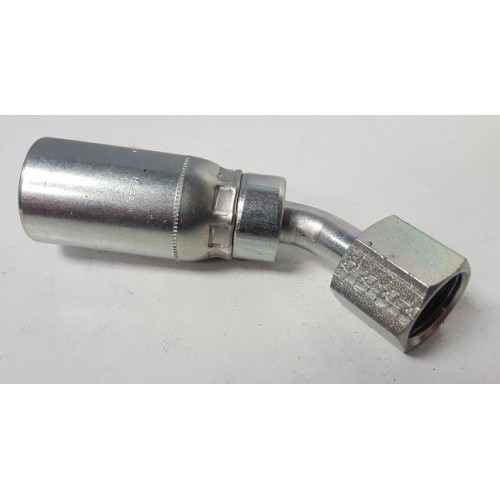 3/8 X 3/8 Female 45° SAE 45 hydraulic hose fitting.